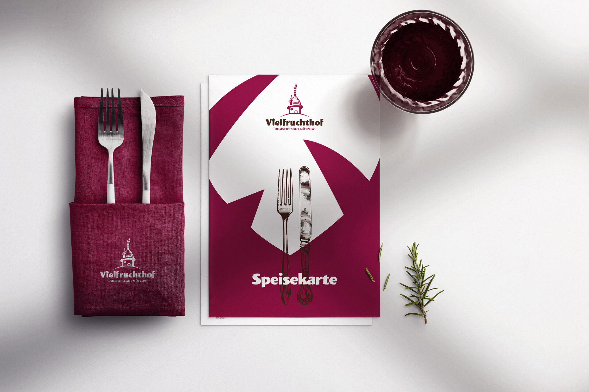 Ergänzend wurden zahlreiche Kommunikationsmittel überarbeitet – darunter Flyer, Plakate, Leitsysteme sowie modern gestaltete Speisekarten für das Hofrestaurant – um die neue Markenidentität auch vor Ort und in gedruckter Form sichtbar und erlebbar zu machen. Das Ergebnis ist ein authentischer, moderner Markenauftritt, der die Werte des Vielfruchthofs klar kommuniziert und Besucher:innen sowie Partner:innen gleichermaßen anspricht.